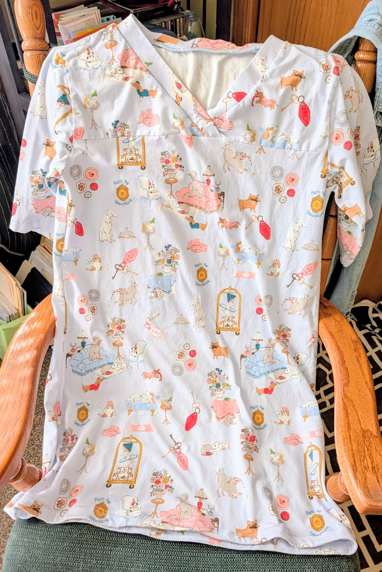 I also made all the ladies on our list a nightgown from this adorable cotton jersey print of frou-frou canines.