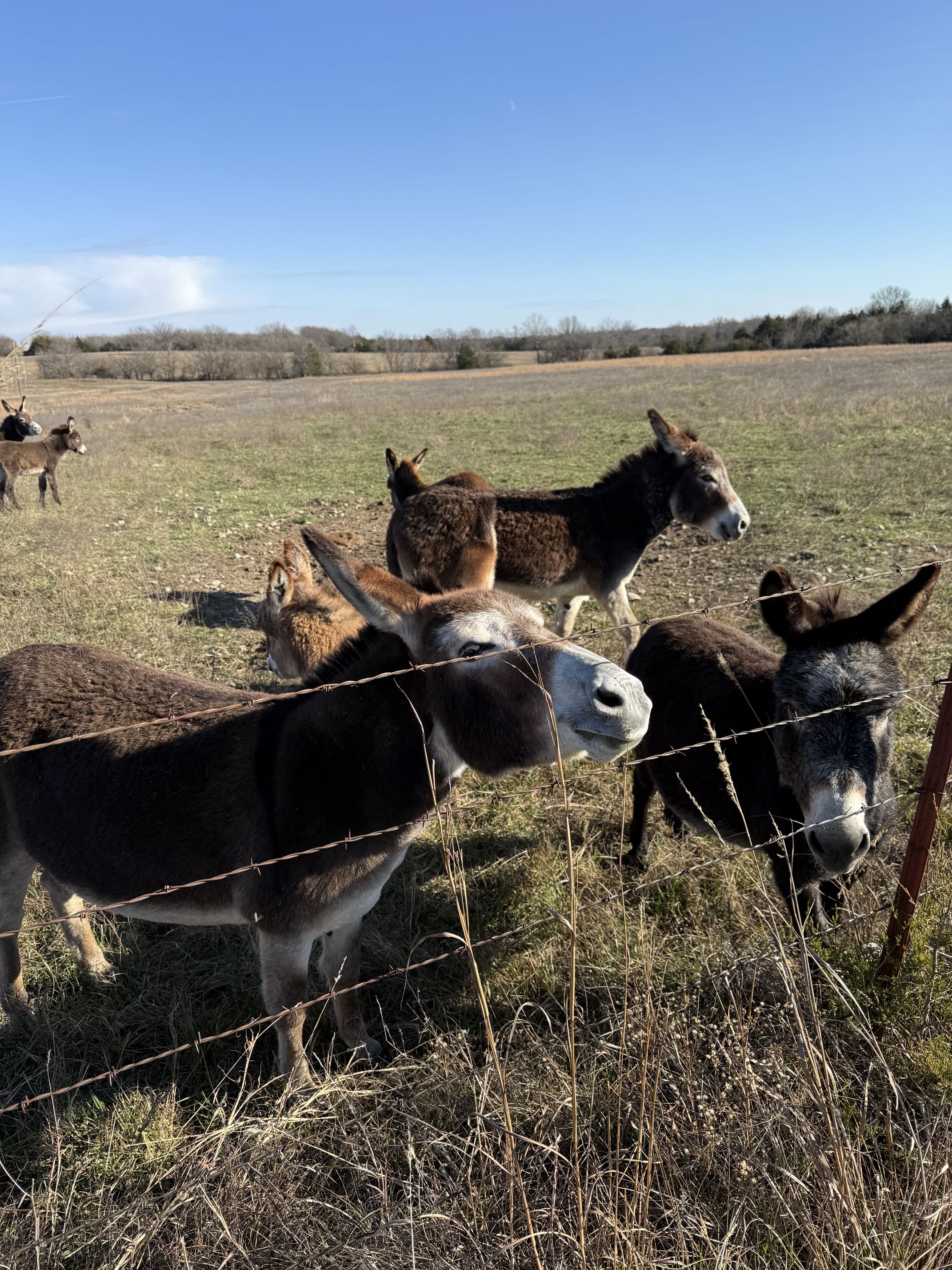 The donkeys at my in-laws farm in Kansas came up to the fence looking for carrot treats, they were pretty adorable.