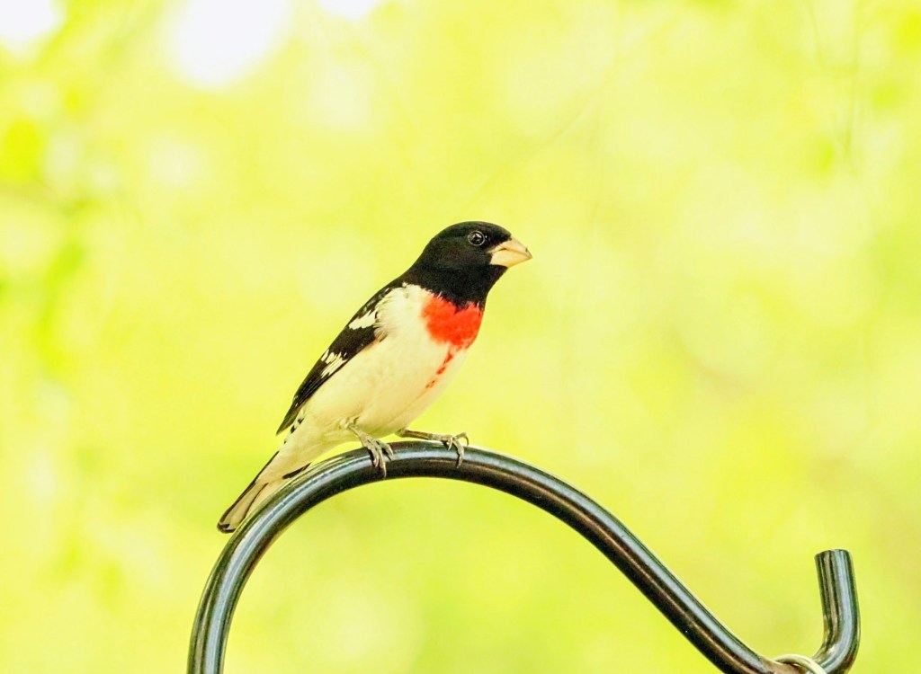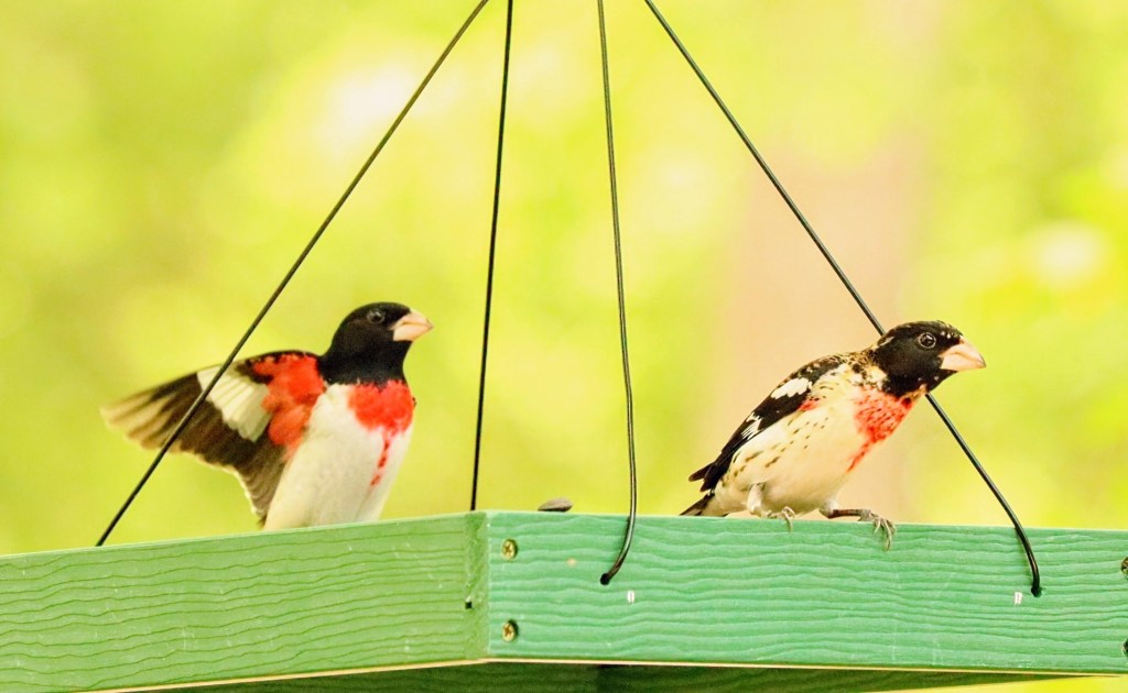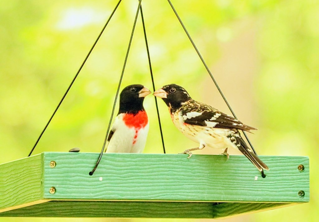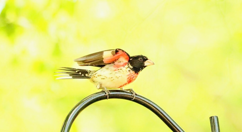 I went four months without a post and now here’s a second one in less than a week. Kinda cuckoo, I know, but I can’t help it. I had to share some more bird photos because… the Red Breasted Grosbeaks are back!!! They are on their annual migration through The Ozarks in Southwest Missouri to their summer territories in the Eastern United States. They usually pass through each Spring during a short three (or so) week window and stop by our hopper trays to fuel up on some black oil sunflower seeds. I look forward to them every year, who wouldn’t?!