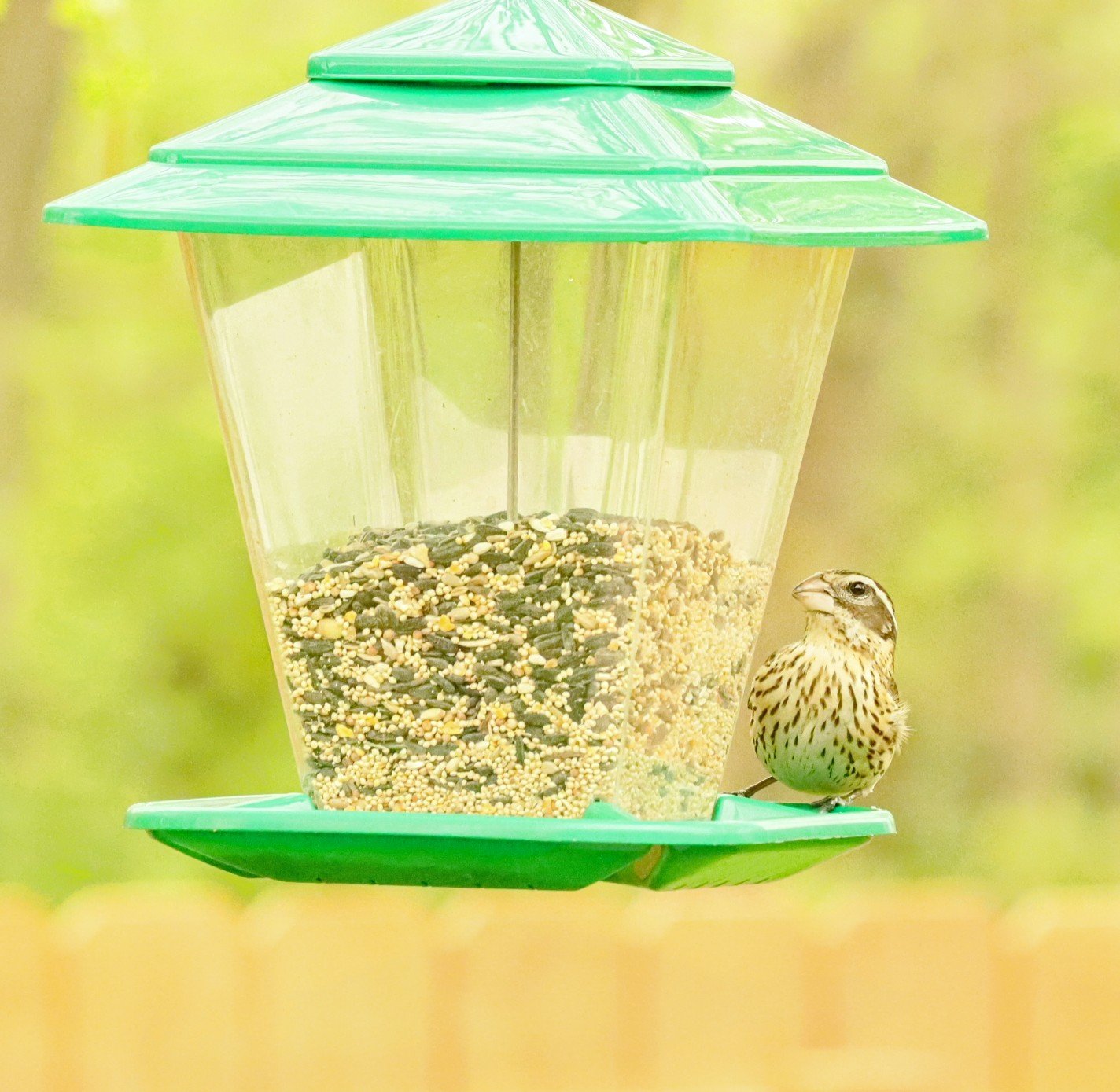 Sitting cocooned in a luscious, lemon minky blanket as a brace against the damp chill of an early May breeze, I conceal myself and wait in the southwest corner of the back patio. You must make yourself small and discreet when bird watching. Our fully blossomed, lush purple lilac tree sends its bouquet of deliciousness, so sweet I can almost taste it, around the corner of the brick wall serving as part of my cover. A couple of mature, verdant green, newly leafed-out river birches dwarf the trio of bird feeders directly between them. The birches’ treetops are full of Goldfinches, Carolina Chickadees, Cardinals, House Finches, and Tufted Titmice singing in brilliant chorus as they rise and fall on the quivering branches with the waves of the wind. Bluejays, Mourning Doves, and Chipping Sparrows hop along in the fast growing blades of grass as they hunt for and peck at seeds on the ground below the feeders. Near the trunk of one of the birches a pair of shy, but gorgeously vivid, Blue Buntings huddle close together . A Baltimore Oriole, clothed in his jet-black hood with a juicy orange throat and chest, hesitates to leave his perch in the tree canopy before carefully alighting on the feeder tray to snack on sunflower seeds. Four male Red-breasted Grosbeaks swoop in and spread out on various limbs, followed moments later by a female. Their striking v-shaped patches of rosy red on a clean, linen white chest reminds me of cool summertime treats like strawberry ice cream.