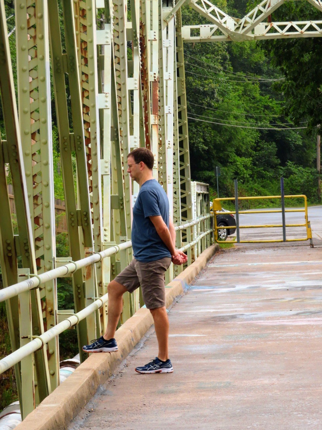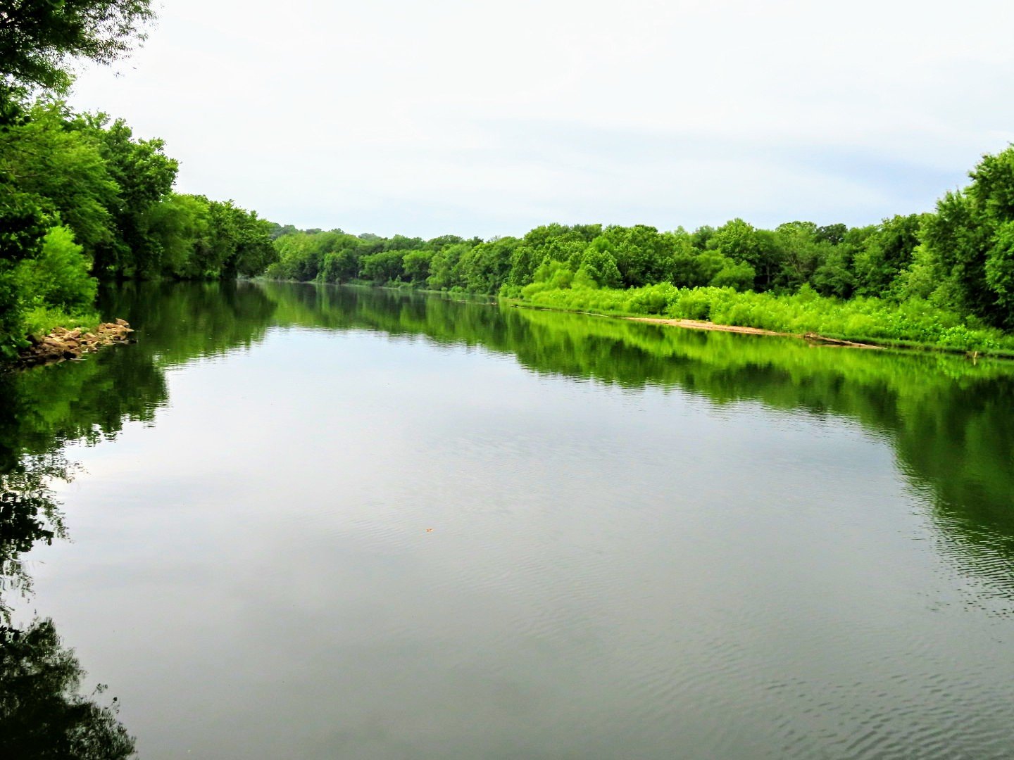 There is a river just a mile and a half down the road from our house with a lovely bridge and trail from which to admire nature. Hubby humoured me and took me for a while around noon on Friday. Though I can’t walk the trail anymore, we traversed the bridge and took in all the special delights that fill the senses when around running water. Birds chirping, breezes blowing, water rippling, the faint whiff of fish in the air, the sight and smell of earth and dirt eroding, tree roots erupting on trails down to the river banks, and the beauty of wildflowers clustered along the banks and in the undergrowth, or definitely blooming in solitary confidence and glory.
