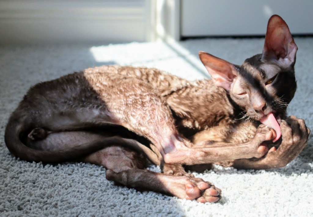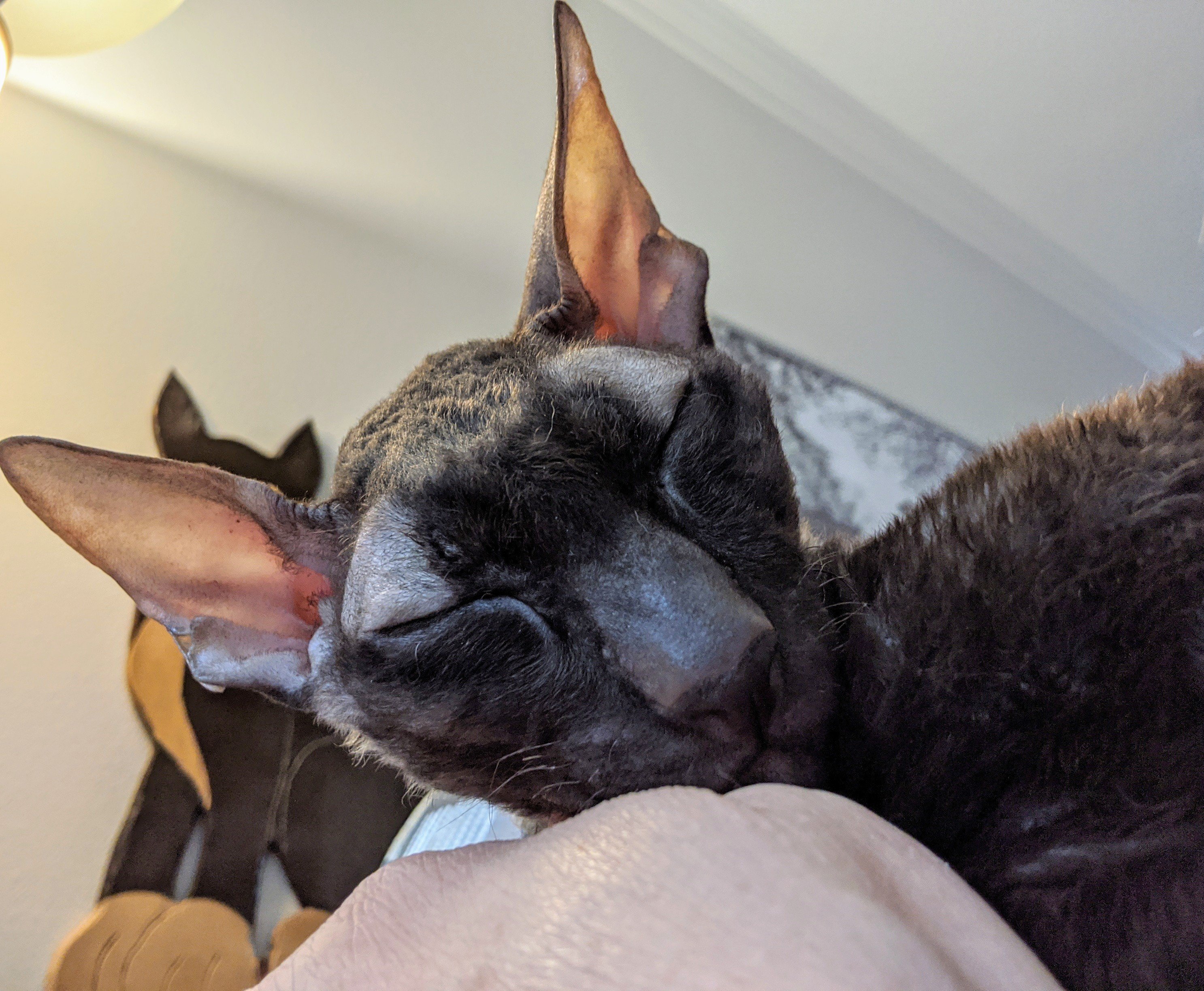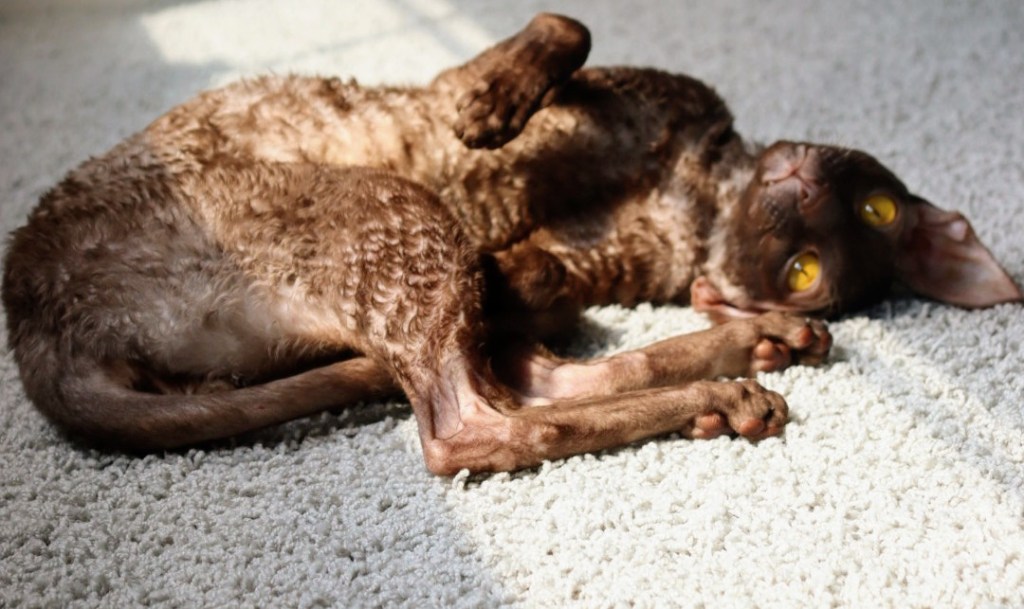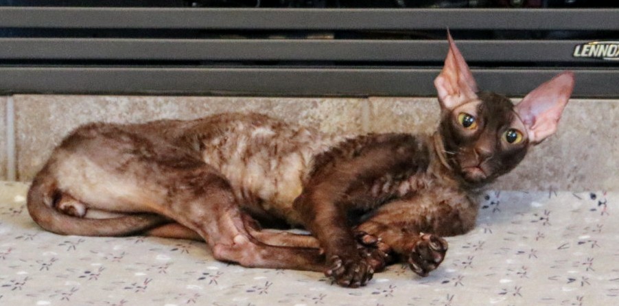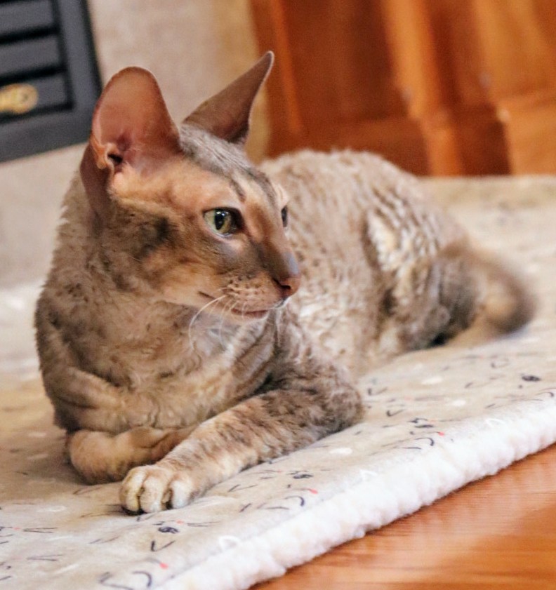 We have been enjoying the gas fireplace in our new house this winter. Our cats camp out in front of it any time we have it on and melt into the cutest kitty puddles you ever did see! Last week I made them a cute cat bed to lie on instead of the cold floor. Laudanum (“Laudy”) is our 10 year old blue Cornish Rex and Pip is our 3 year old chocolate Cornish Rex.