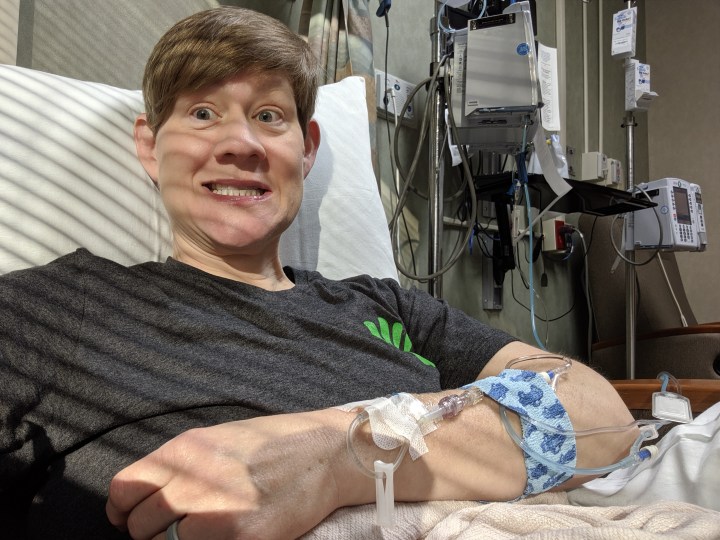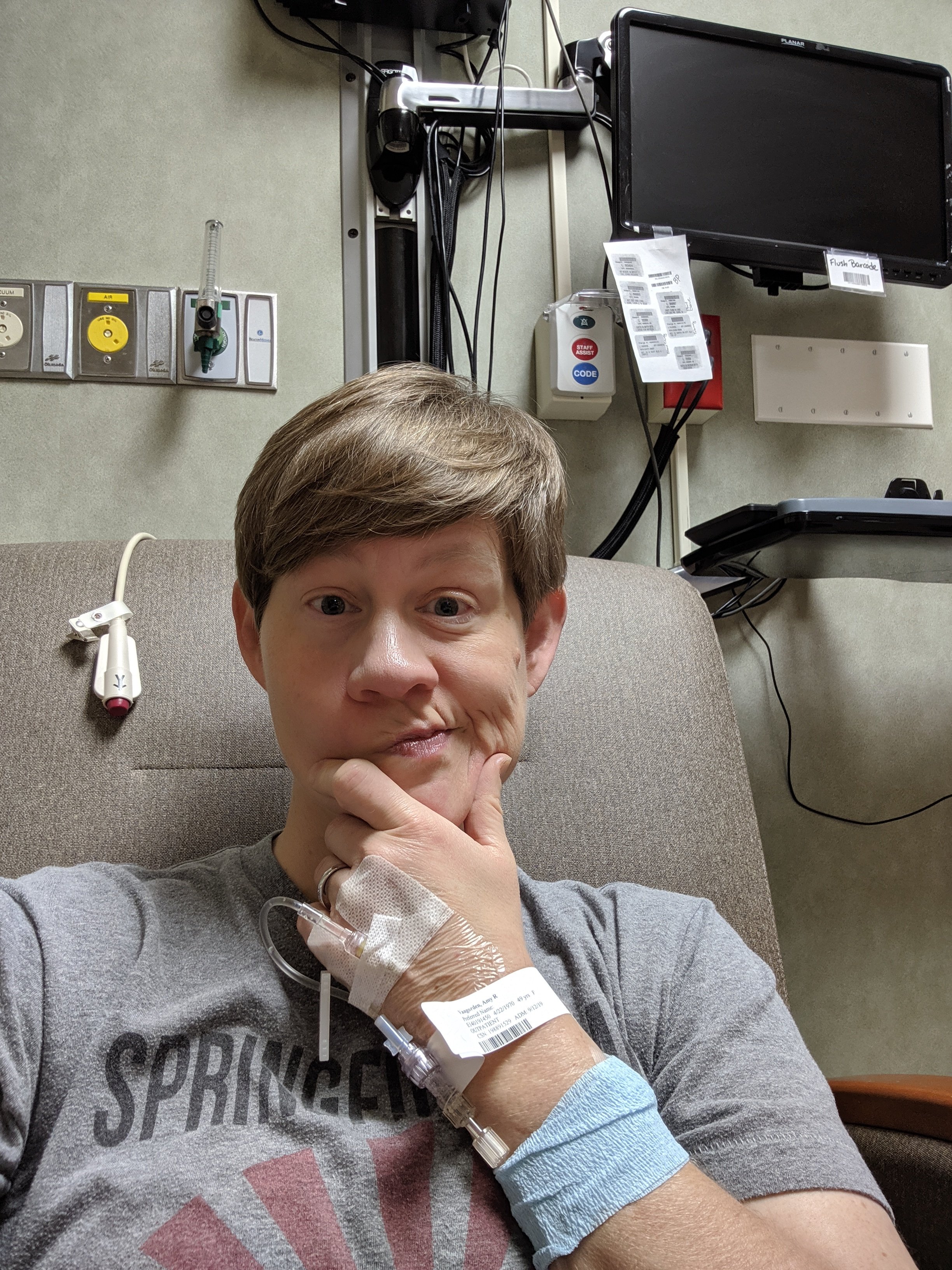 It’s time for my next heapin’ helpin’ of Ocrevus! I’m writing this at the hospital while the Ocrevus Juice (“OJ”) is going in.
