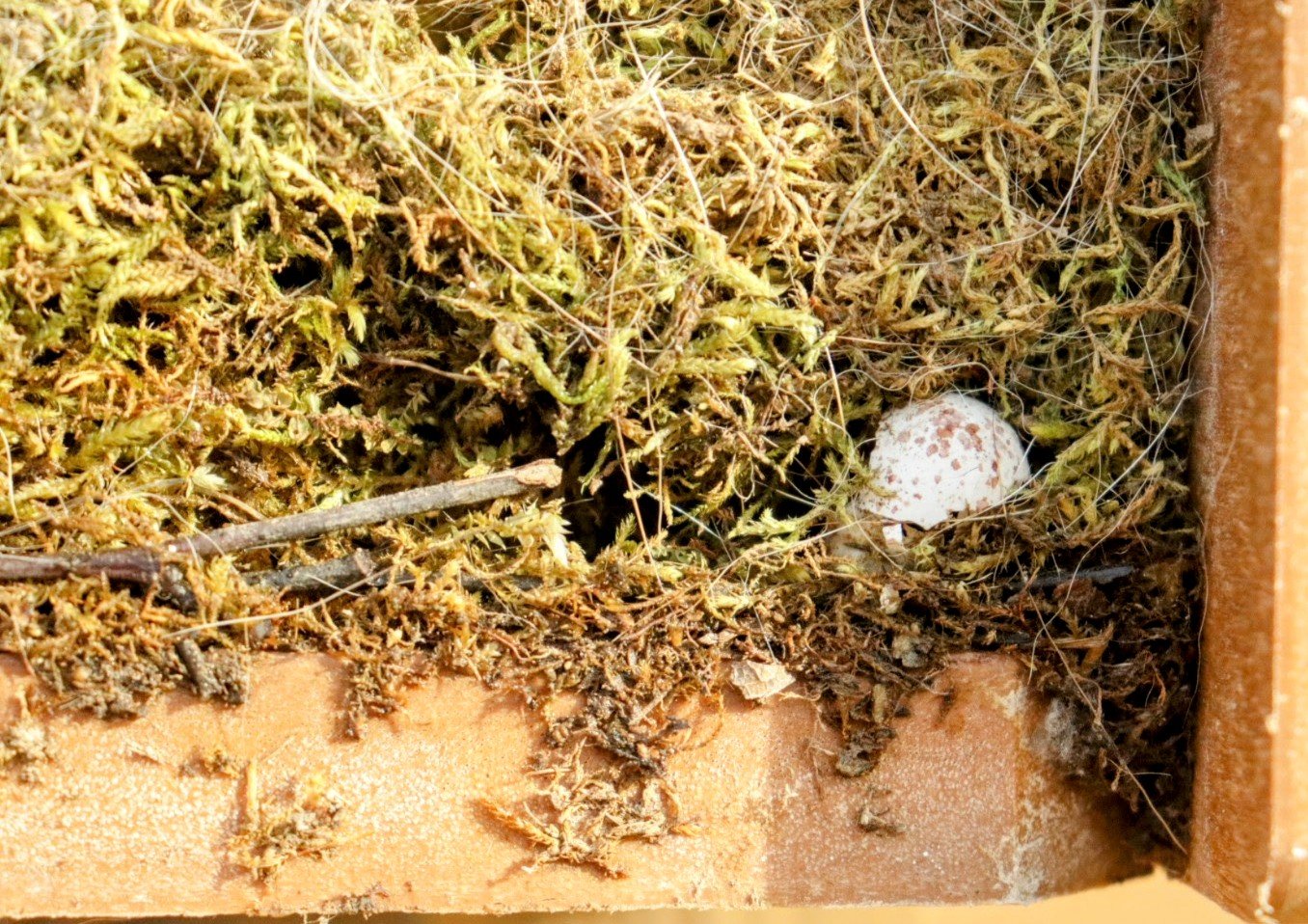 Watching the water flow at the lake in our neighborhood park.MS gal and her scooter Beauty in death and a promise of what will be again.Even the sun’s rays were windy 💨My favorite benchPretty corner in our backyard I decided to clean out the empty bird boxes for the season…… and found the partial remains of a Carolina Wren egg 🧡.